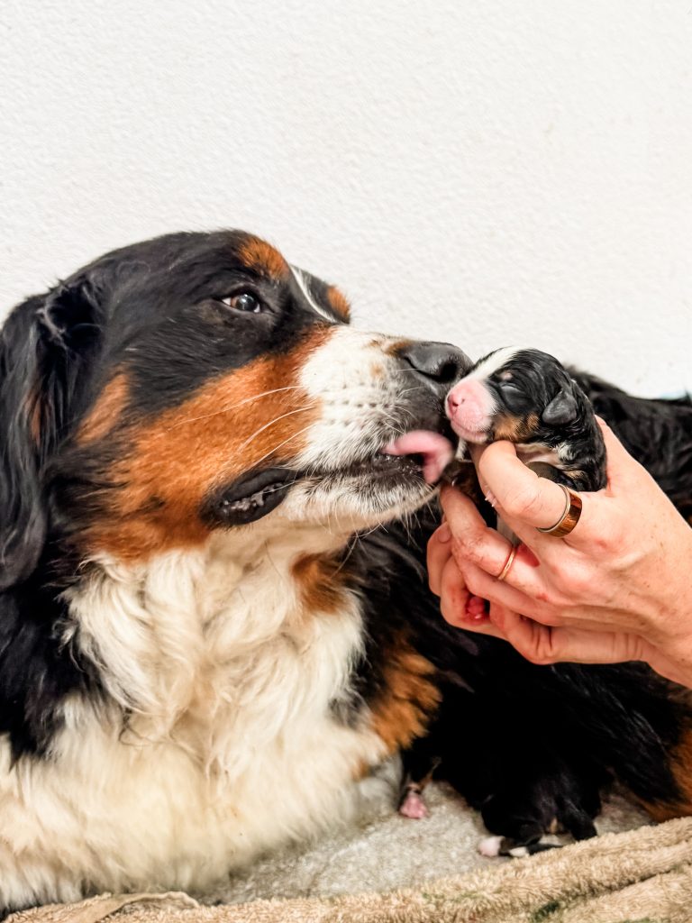 Miso’s (reverse F1b Bernedoodle) litter will arrive on December 7th, 2025. See the available puppies here